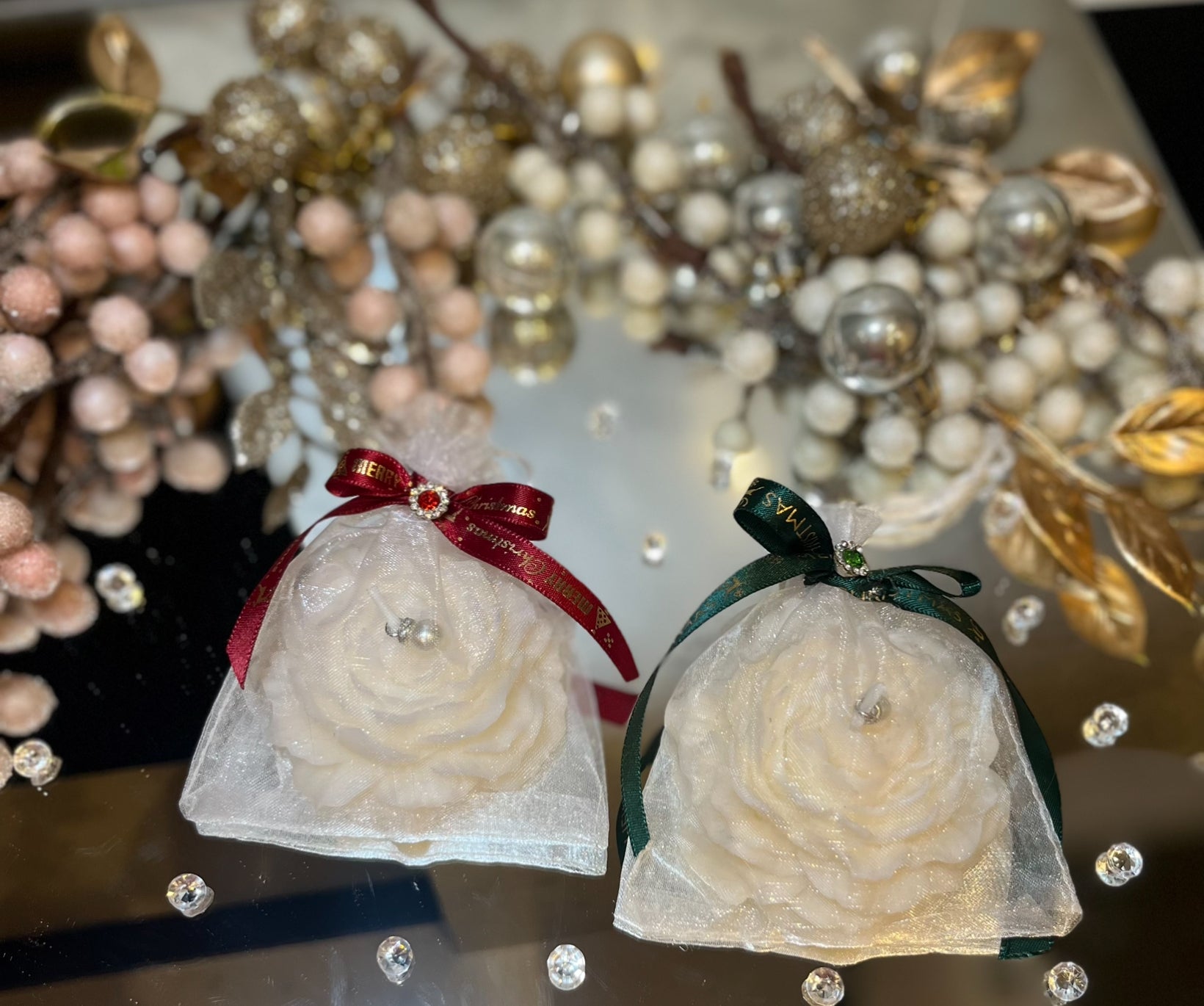 Wrap yourself in the warmth of the season with our enchanting Christmas Peony Flower Candle, elegantly adorned with a choice of rich red ribbon or sophisticated hunter green. Imagine this centerpiece gracing your festive table, its detailed peony design capturing the essence of elegance and comfort. Crafted to perfection, this candle embraces the spirit of Christmas, making it a thoughtful gift or a charming addition to your own holiday decor.